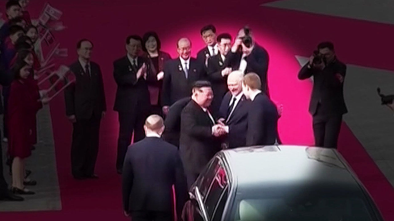이번에 방북한 사실이 영상을 통해서 확인됐는데 환영식 도중 김정은 위원장과는 악수를 했습니다.