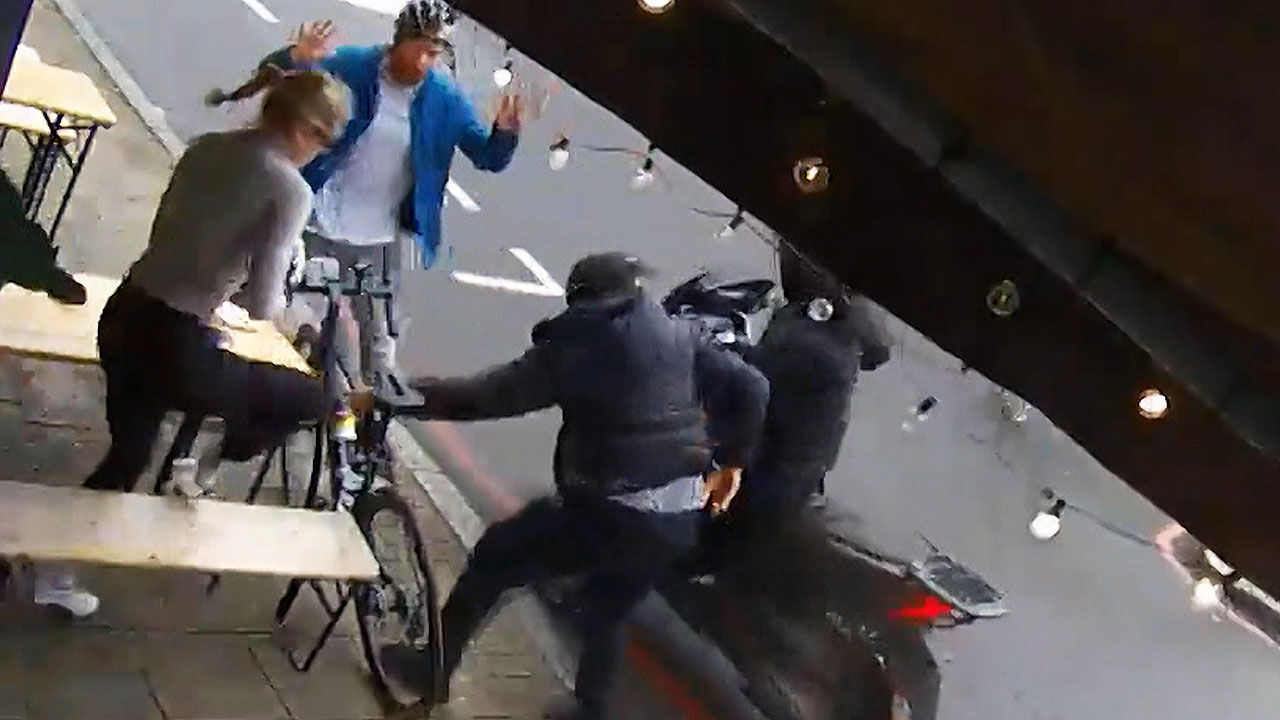이들은 곧바로 한 커플에게 접근해 자전거를 내놓으라고 요구하는데요.