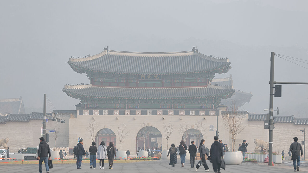▲ 미세먼지 농도가 '나쁨' 수준을 보이는 27일 서울 광화문이 뿌옇게 보인다.