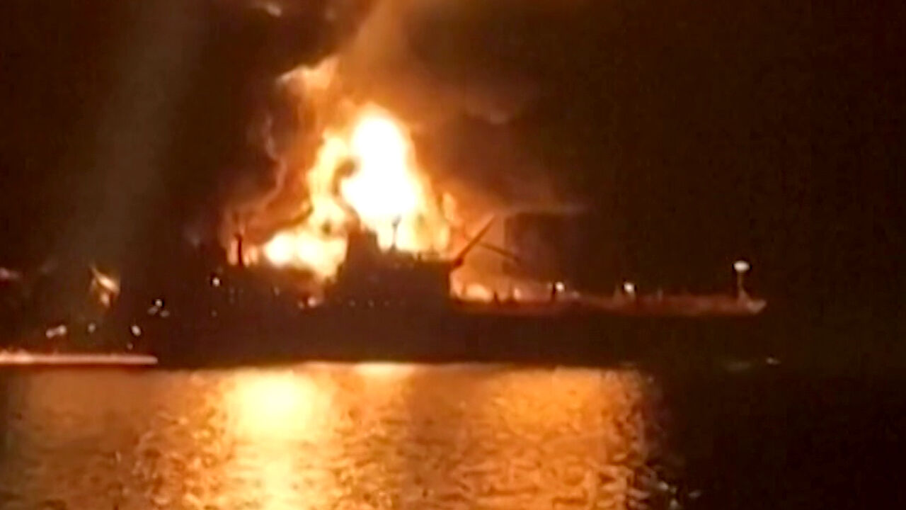 지난 11일, 이란의 미사일 공격으로 불길에 휩싸인 채 좌초한 태국 화물선 '마유리나리'호와 지난 6일 배 전체가 완파된 채 검은 연기에 뒤덮인 몰타 선적의 화물선으로 추정됩니다.