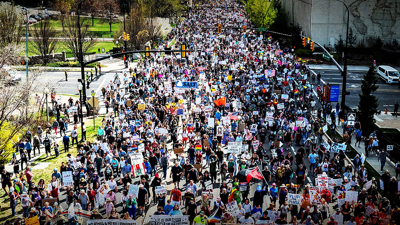 "미국에는 왕이 없다"를 외치는 노 킹스 시위가 열린 건 지난해 6월과 10월에 이어 이번이 세 번째입니다.