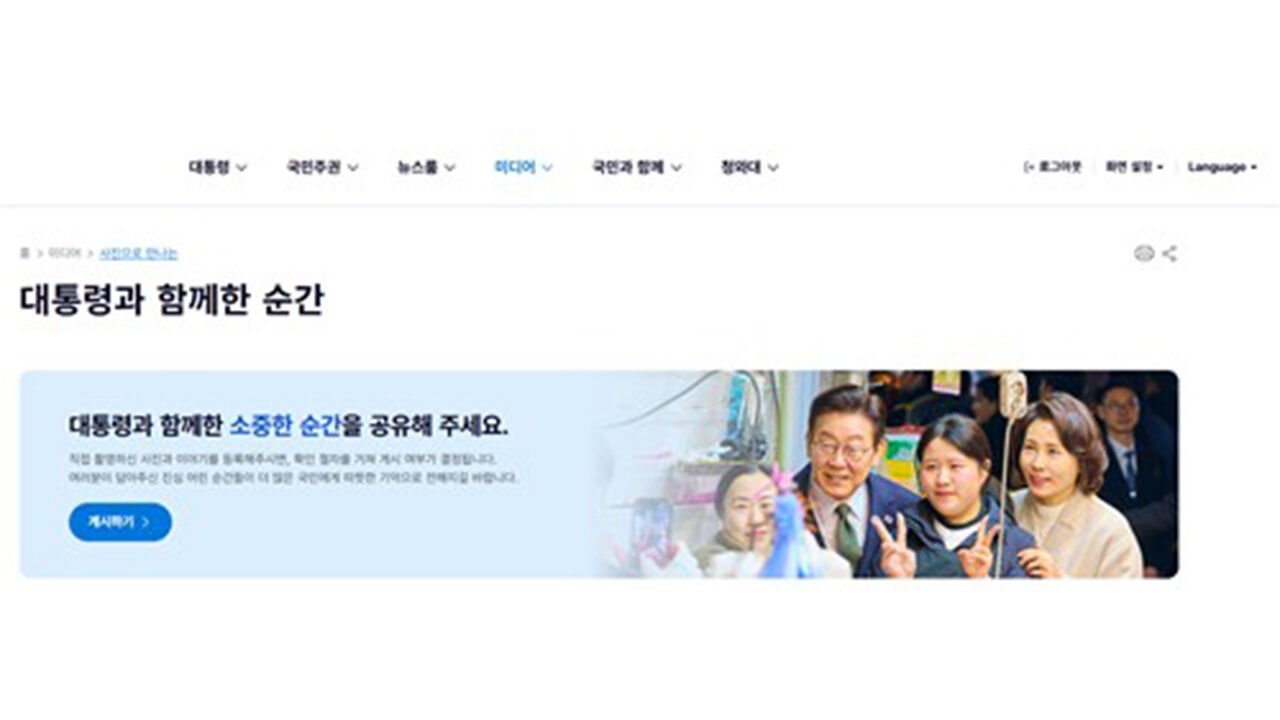 이 가운데 '대통령과 함께한 순간' 메뉴를 통해서는 국민이 대통령과 함께 찍은 사진을 올릴 수 있습니다.