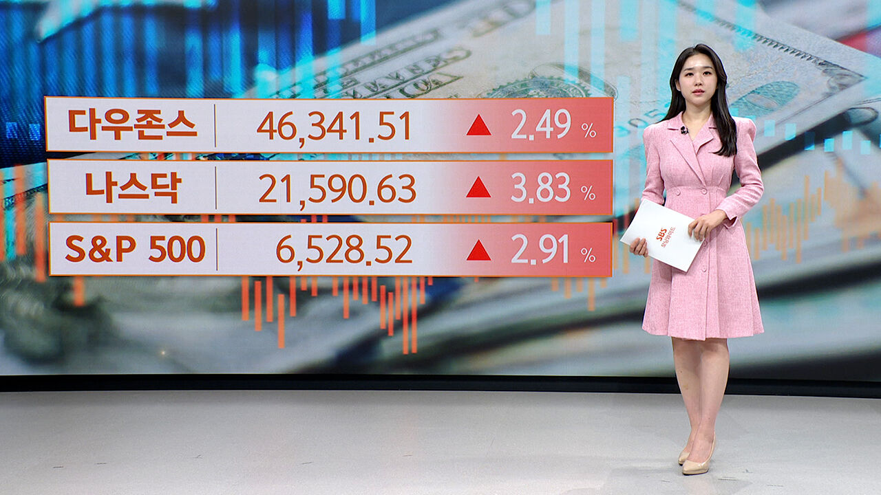 나스닥이 3.83% 오른 가운데, S&P500과 다우지수 역시 각각 2%대 상승세를 기록하며 장을 마쳤습니다.