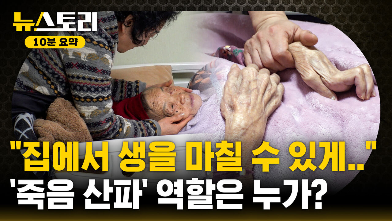 사랑하는 가족 품에서 고통 없이 그리고 편안하게 맞이하고픈 존엄한 죽음, 대부분의 사람이 바라는 생의 마지막 모습이다. 3월 27일 통합돌범법이 전면 시행됐다. 아프고 늙어도 살던 집에서 의료와 요양을 함께 받을 수 있도록 하겠다는 국가의 약속이다. 통합돌봄법은 존엄한 죽음의 마중물이 될 수 있을까? SBS '뉴스토리'는 초고령 사회를 앞둔 우리 사회가 필요로 하는 '좋은 죽음'의 조건은 무엇인지 질문을 던진다.