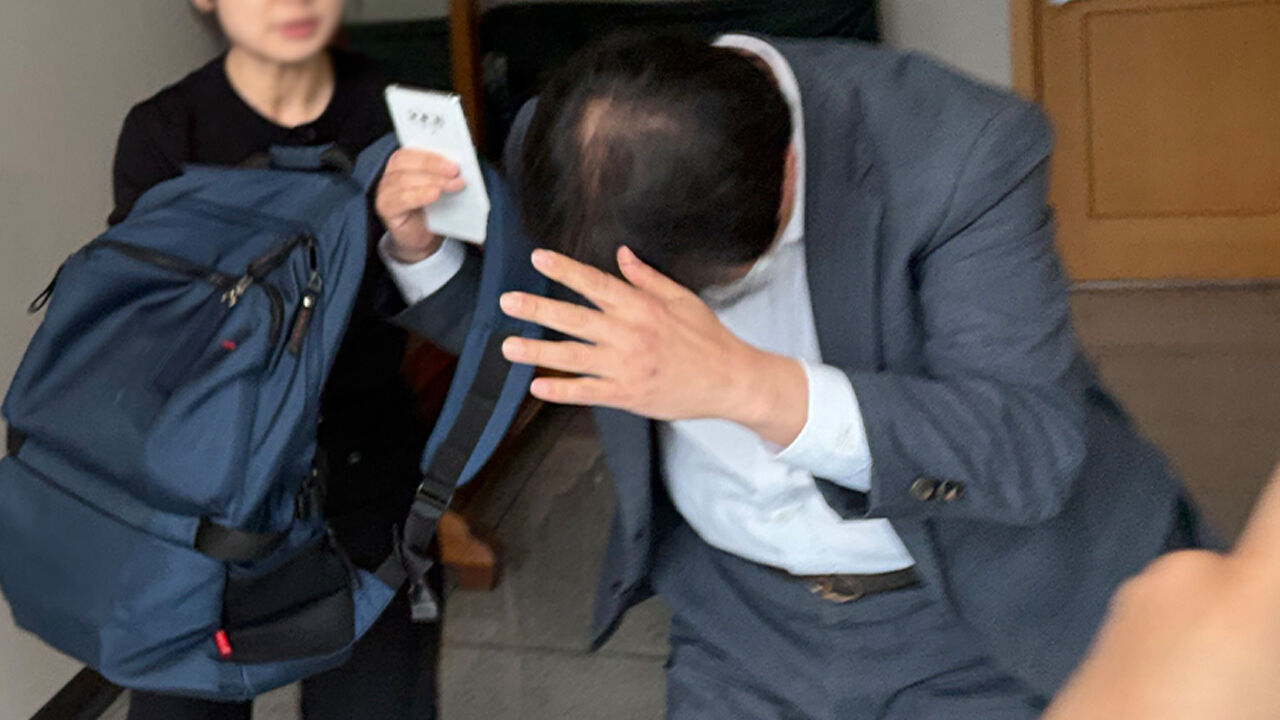 그는 고개를 숙이거나 카메라를 향해 손을 뻗는 등 취재진을 피해 이리저리 허둥대다가 보안 검색대를 아무런 절차 없이 통과해 직원들에게 제지당하기도 했습니다.