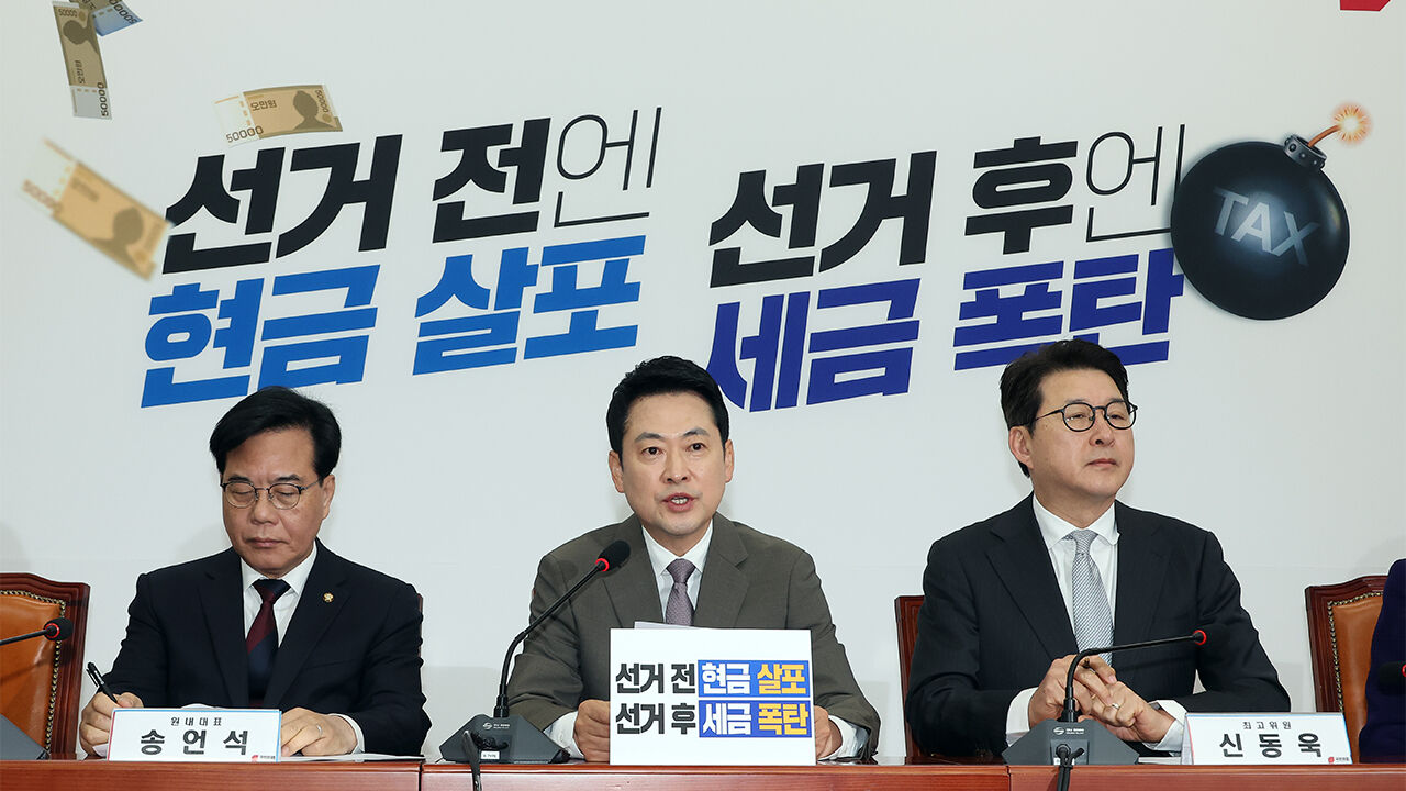 이어 "돈을 풀면 인플레이션의 속도는 더 빨라지고 풀린 돈이 부메랑이 되어 민생을 강타할 것"이라며 "지방선거만 끝나면 보유세 올리고 담뱃값, 소줏값 올리고 설탕세까지 만들어서 그 돈의 몇 배를 거둬갈 것"이라고 주장했습니다.