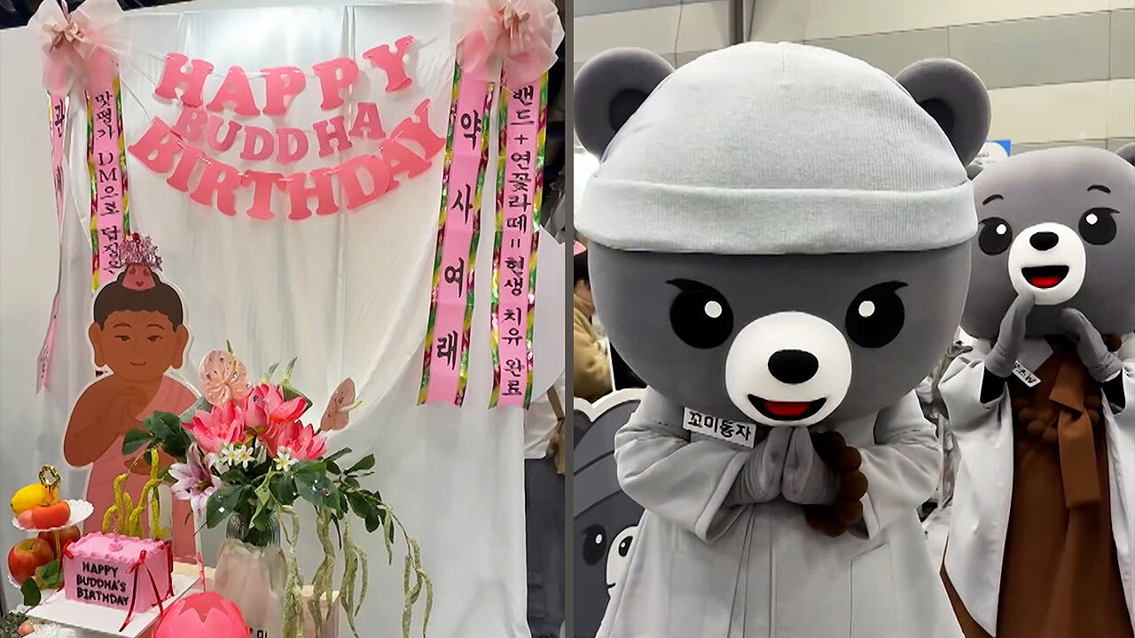 번뇌 닦이는 수건, 중생아 사랑해 등 불교 철학을 유쾌한 밈으로 풀어낸 굿즈를 사기 위한 긴 줄도 늘어섰습니다.