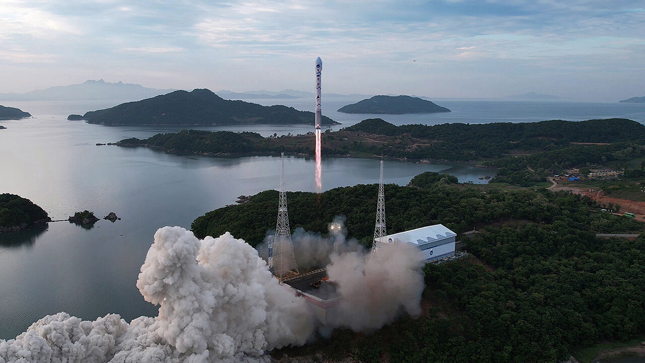 ▲ 북한이 2023년 5월 평안북도 철산군 동창리 새발사장에서 쏜 첫 군사정찰위성 '만리경 1호'를 실은 위성운반로켓 '천리마 1형'의 발사 장면을 지난 2023년 6월 1일 조선중앙통신이 공개했다.
