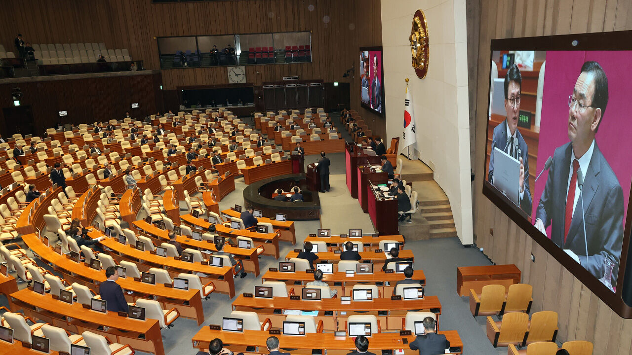 ▲ 3일 국회에서 열린 정치·외교·통일·안보 분야 대정부질문에서 김민석 국무총리가 국민의힘 주호영 의원의 질문에 답하고 있다.