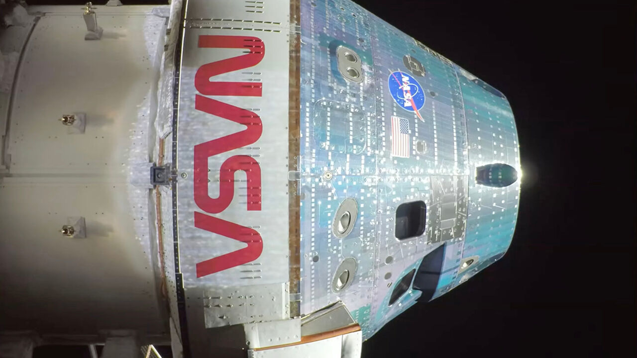 ▲ 아르테미스 2호 우주선 외부에 부착된 태양전지판 날개에 장착된 카메라로 찍은 고해상도 셀카