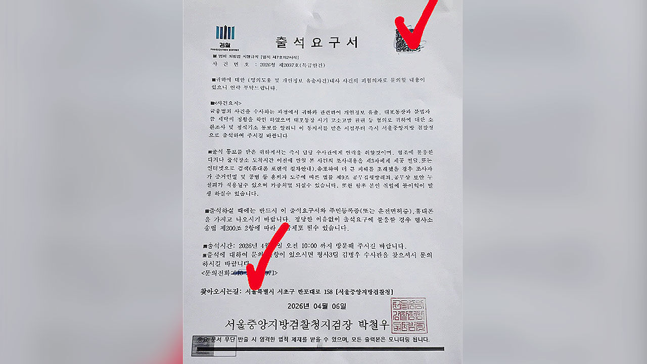 사진을 보시면 '출석요구서'라는 제목에 검찰 로고까지 있어 얼핏 보면 진짜 공문처럼 보이는데요.