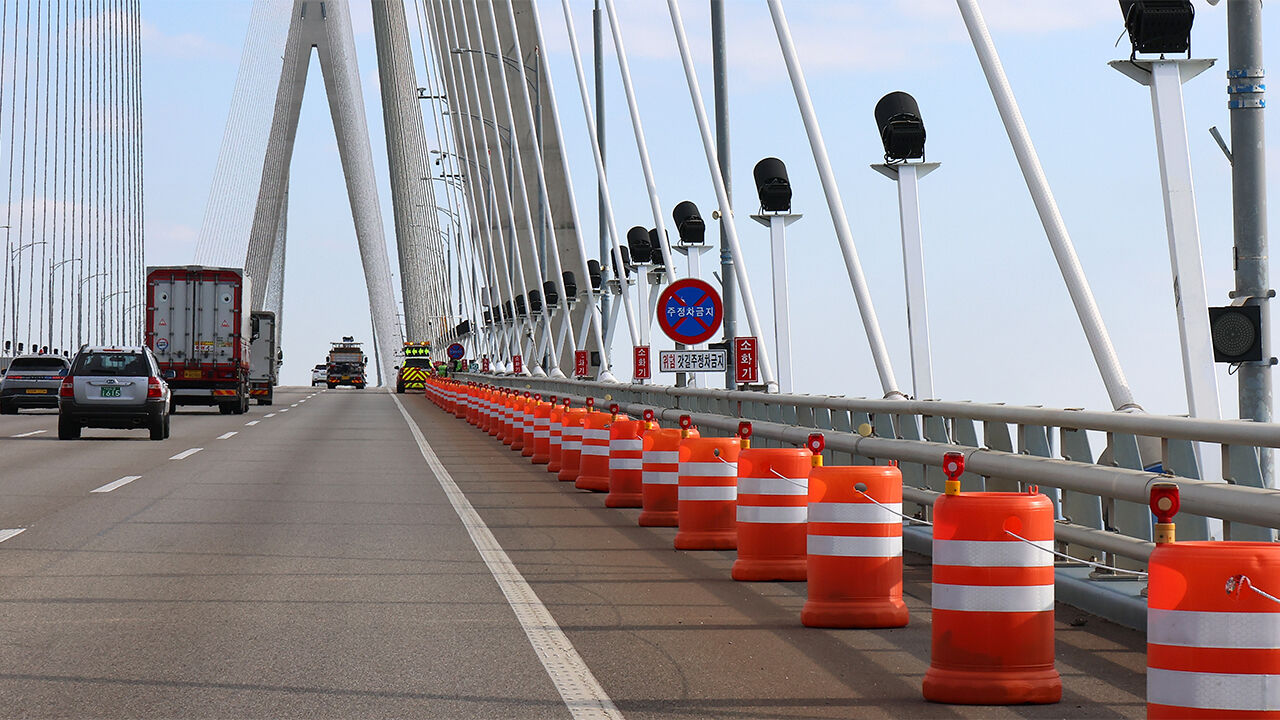 오늘(8일) 오전 8시 45분 인천시 중구 인천대교 인천국제공항 방향 5㎞ 지점에서 40대 A 씨가 몰던 차량이 갓길에 정차 중인 고속도로 순찰차를 들이받았습니다.