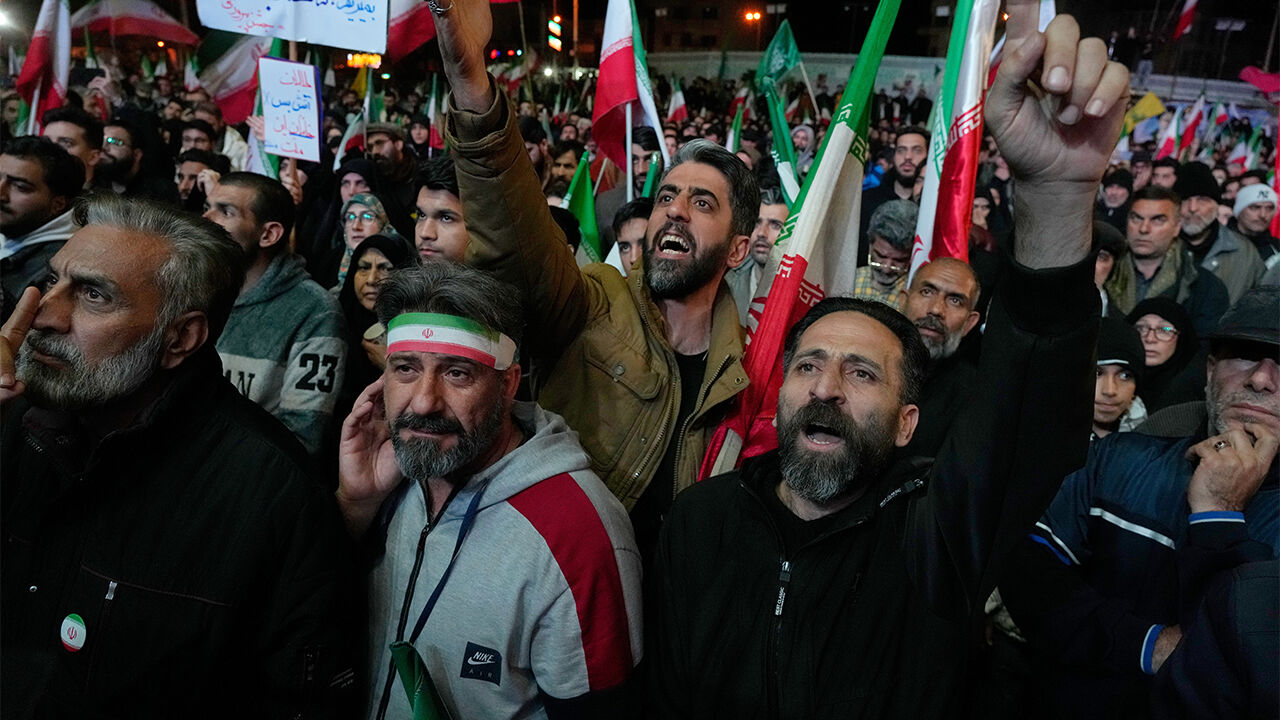 ▲ 미-이란 2주간 합의 발표 이후 테헤란 광장 모인 친정부 시위대