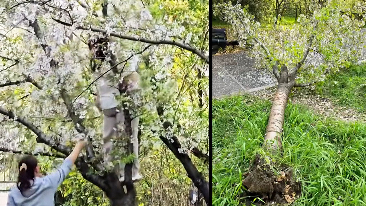 그런데 중국에서는 다들 즐기는 벚꽃길에서 황당한 민폐 행동이 포착됐습니다.