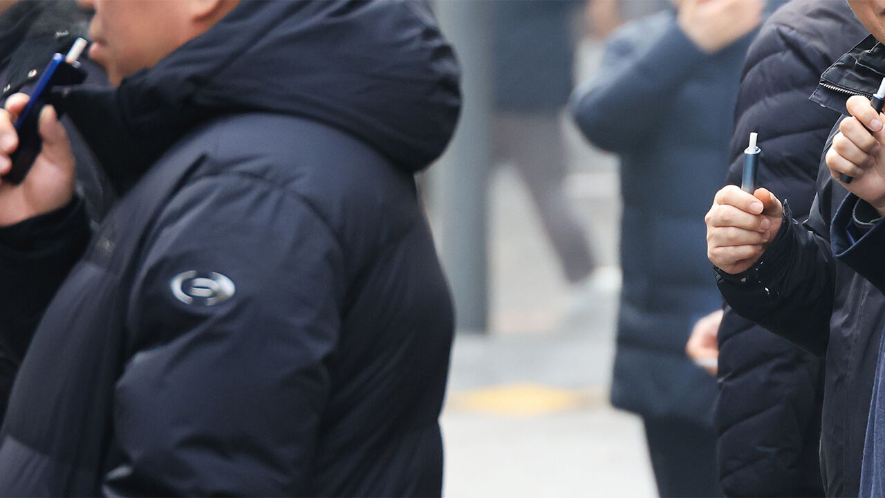 ▲ 서울 시내 거리에서 흡연자들이 모여 전자담배를 피우고 있는 모습