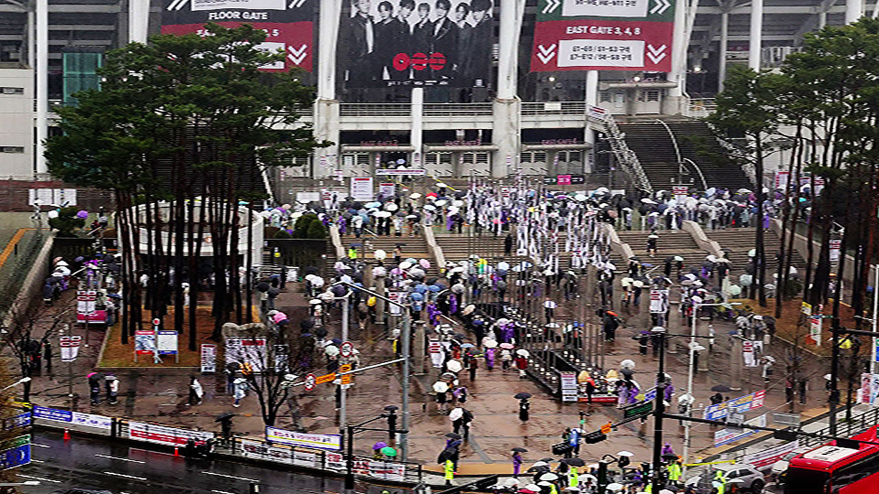 5만 석 규모의 공연장은 쌀쌀하고 궂은 날씨가 무색할 만큼 팬들의 열기가 그야말로 뜨겁습니다.