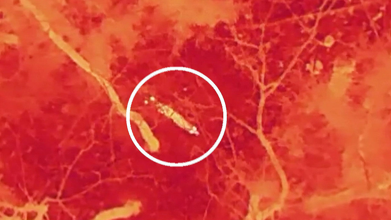 깜깜한 야산을 비추는 열화상 카메라 속, 주변보다 유난히 뜨겁게 빛나는 물체가 움직입니다.