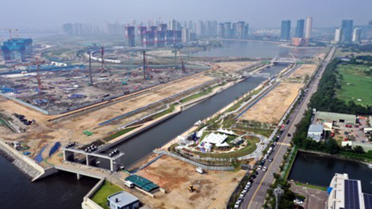 매일 240만 톤의 바닷물이 유입돼 순환하면서 인천 앞바다와 같은 2∼3등급 이상 수질을 유지하며, 사업이 완료되면 송도는 1천만 톤의 담수 능력을 확보해 집중호우에도 견딜 수 있는 방재 능력을 갖추게 됩니다.