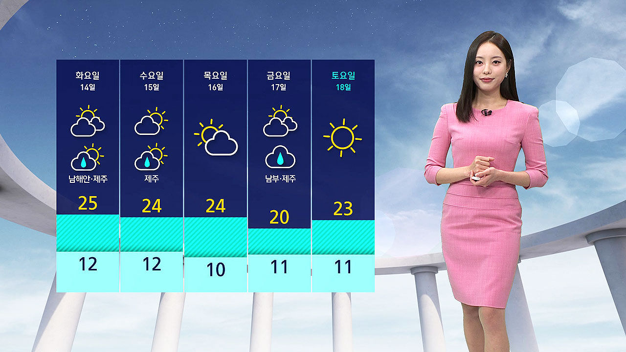 오늘 한낮에 서울이 25도로 평년을 7도가량 웃돌겠고, 파주와 청주도 26도까지 오르며 5월 하순에 해당하는 기온을 보이겠습니다.