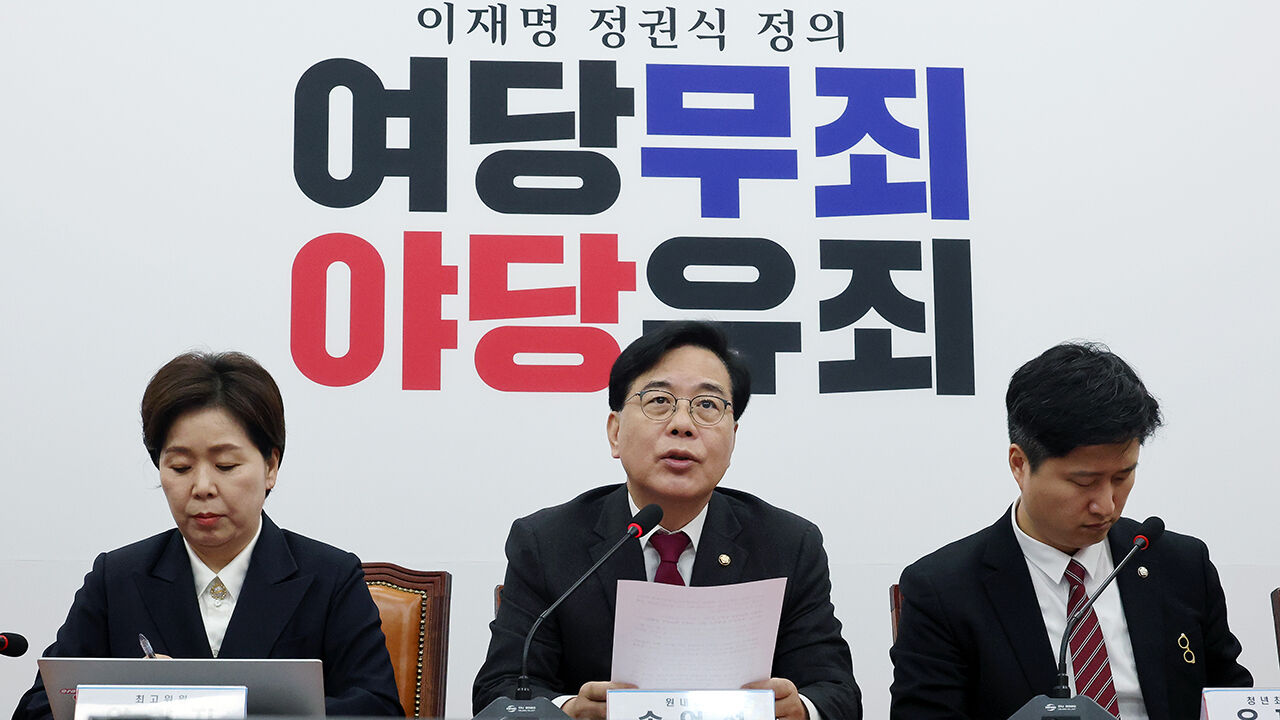 ▲ 국민의힘 송언석 원내대표(가운데)가 13일 국회에서 열린 최고위원회의에서 발언하고 있다.