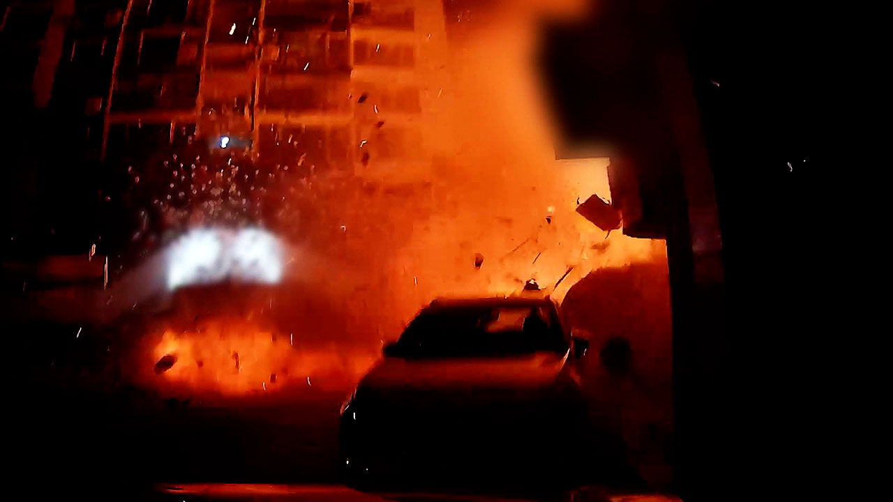 바로 앞에 주차된 차량은 충격으로 찌그러진 채 뒤집어졌고, 맞은편 아파트 창문들도 산산조각 났습니다.