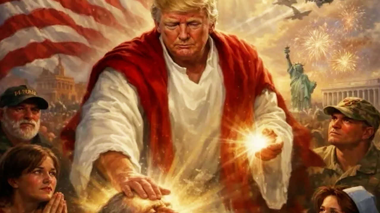 현지 시간 12일, 트럼프 대통령은 전쟁에 반대하는 교황 레오 14세를 맹비난한 뒤, 흰옷에 붉은 망토를 두른 자신의 주변에 광채가 나고, 누워있는 사람의 이마에 손을 올린 AI 생성 이미지를 자신의 SNS에 올렸습니다.