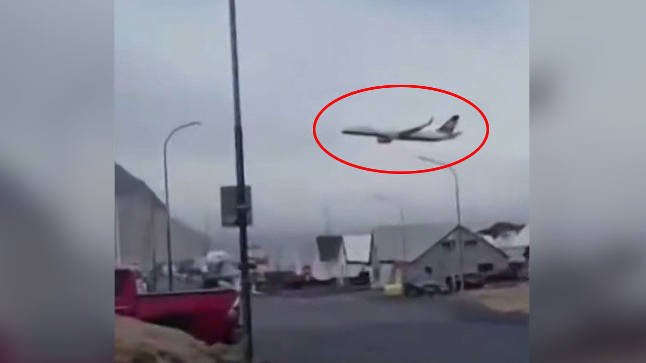 여객기가 마을 바로 위를 아슬아슬하게 스쳐 지나갑니다.