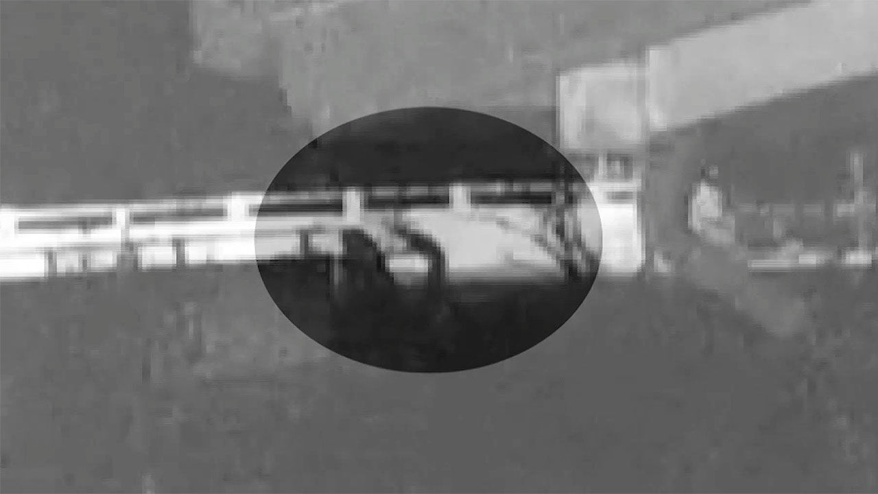 다리 앞에 멈추더니 허리를 숙여 무언가를 작업을 합니다.