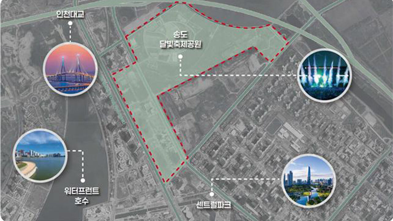 시가지에서 펼쳐지는 도심 경주로 구상 중인 F1 인천 대회의 서킷 후보지로는 송도국제도시 달빛축제공원 일대가 선정됐습니다.