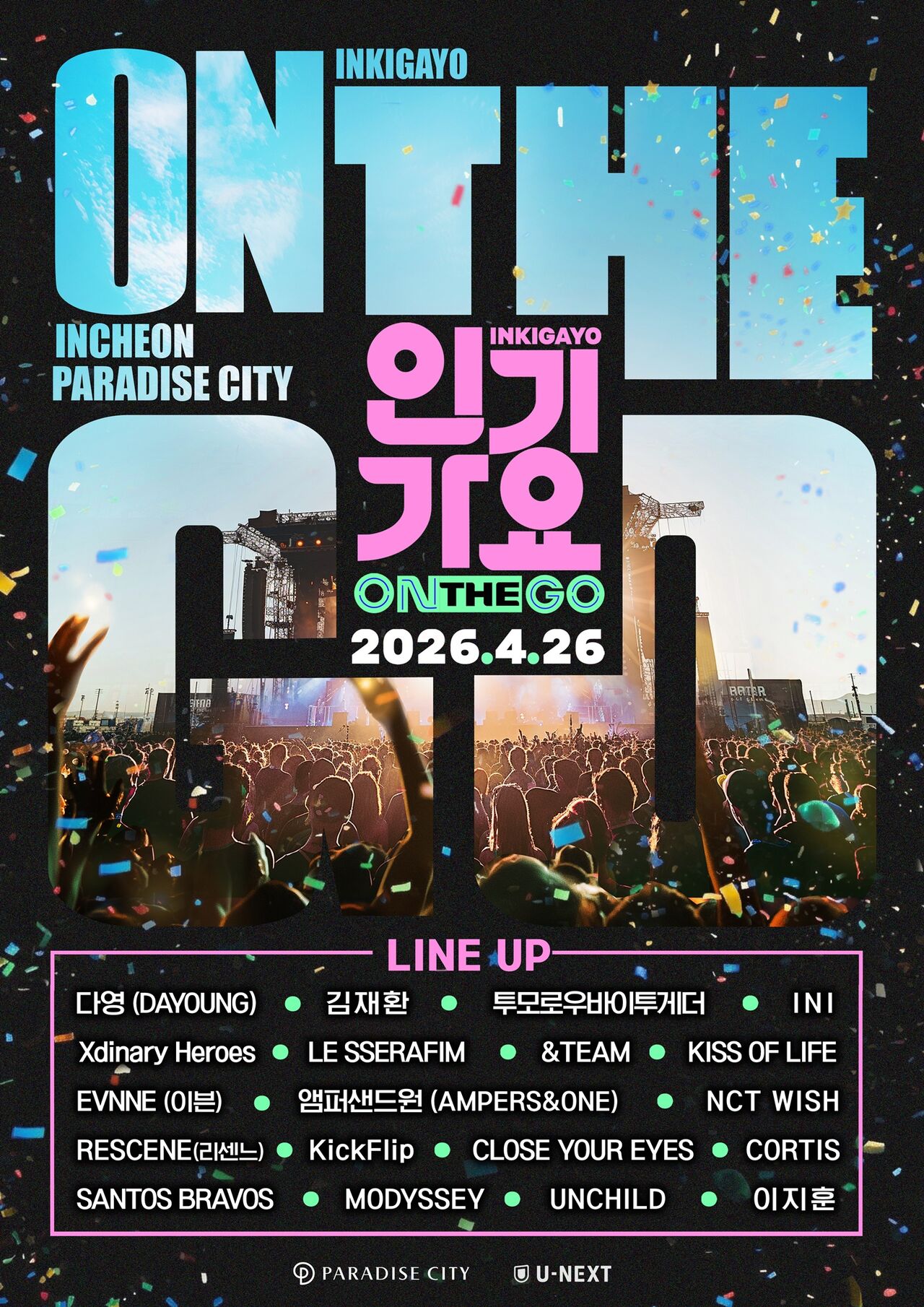 오는 26일(일) 인천 파라다이스시티에서 열리는 이번 공연은 기존 음악 방송의 생생함과 콘서트의 몰입감을 결합한 새로운 형태의 K-POP 페스티벌이다. 아티스트와 관객이 더욱 가까이에서 호흡하는 특별한 경험을 선사하겠다는 취지로 기획됐다.