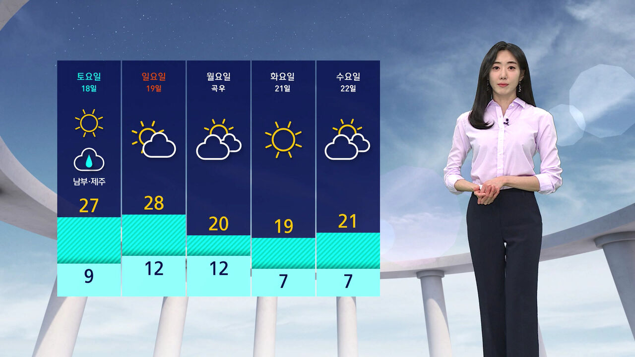 이번 주말까지 때 이른 고온 현상은 계속 이어지겠지만 오늘(17일) 남부 지방 중심으로 비가 내리면서 일시적으로 더위가 주춤하겠습니다.