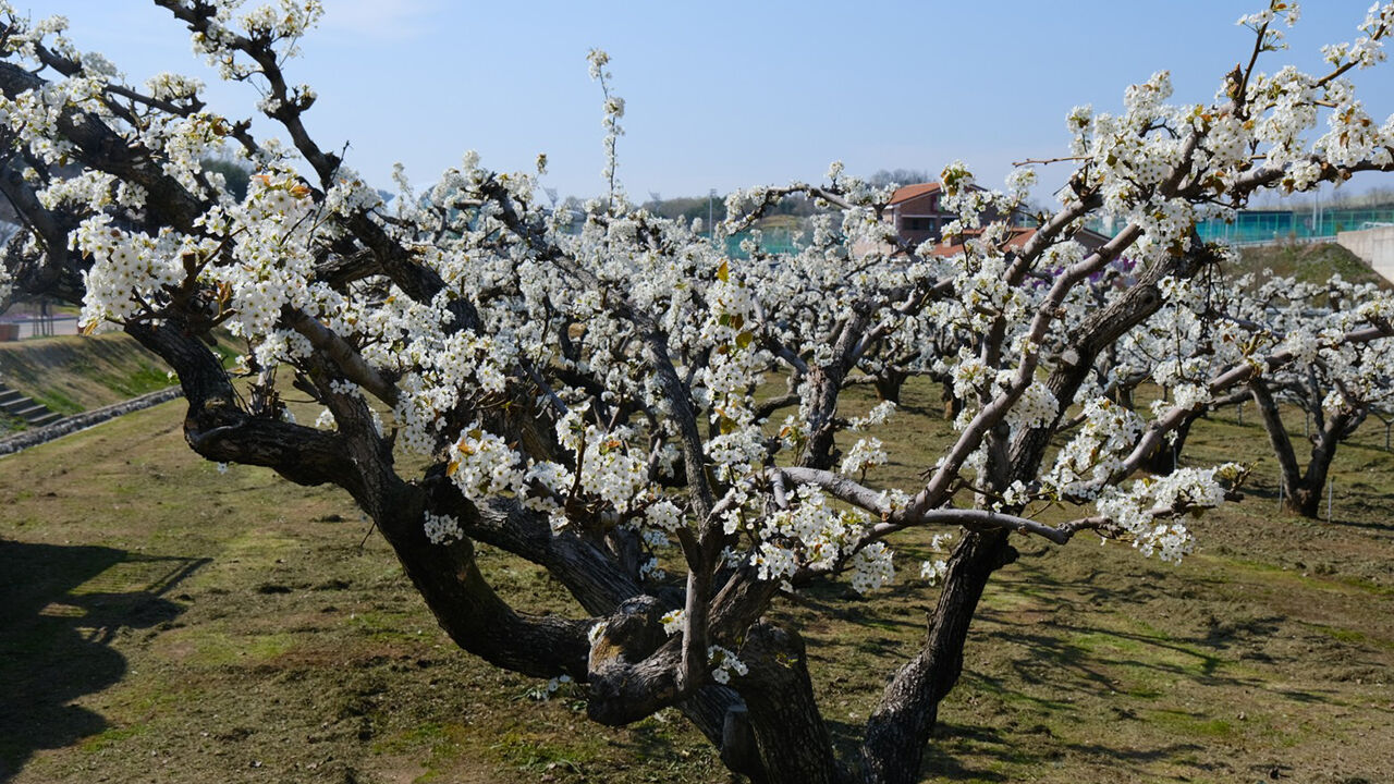 충북 영동군 영동읍 매천리 과일나라테마공원의 수령 100년 넘는 배나무들이 올해도 꽃을 활짝 피웠습니다.