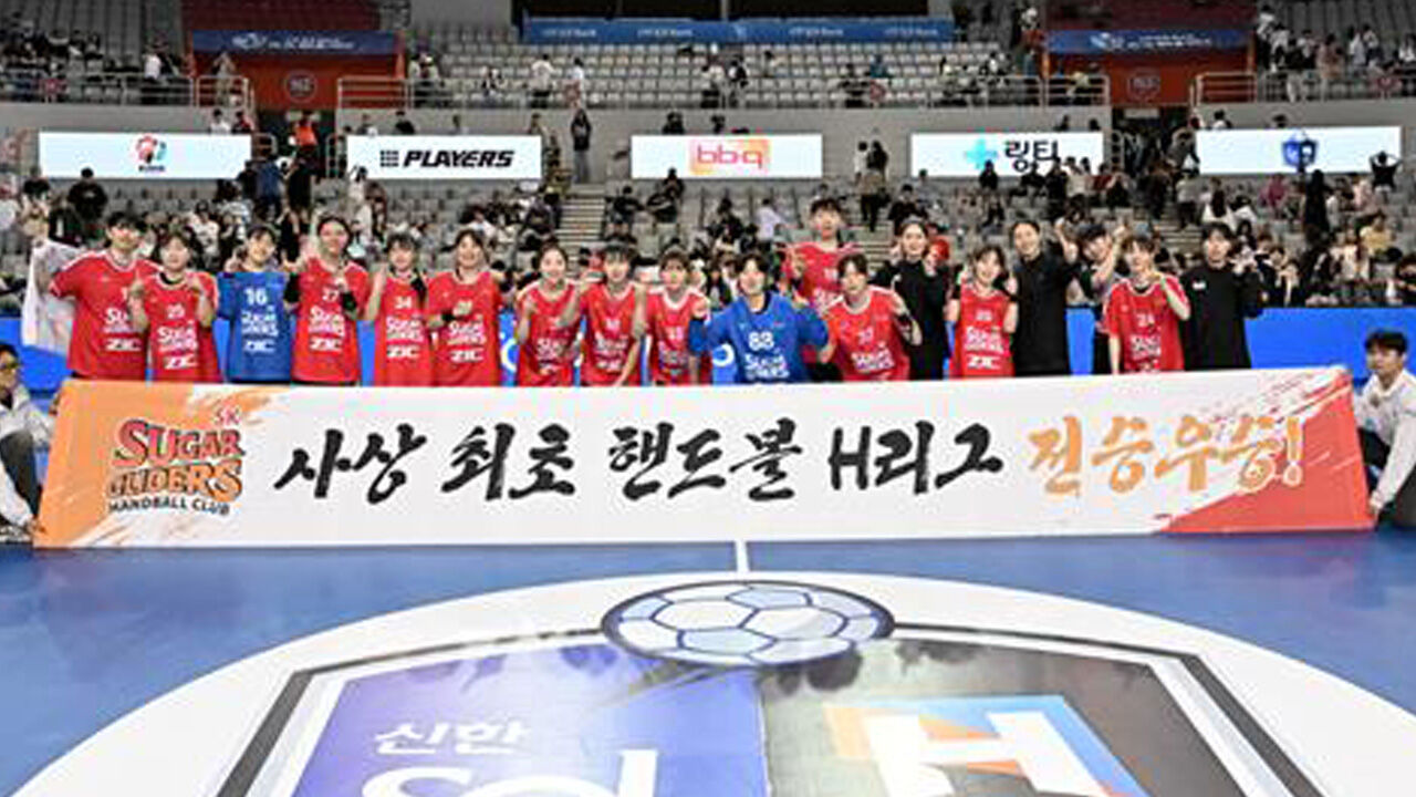 SK 슈가글라이더즈가 핸드볼 H리그 사상 최초로 정규시즌 전승 우승을 달성했습니다.