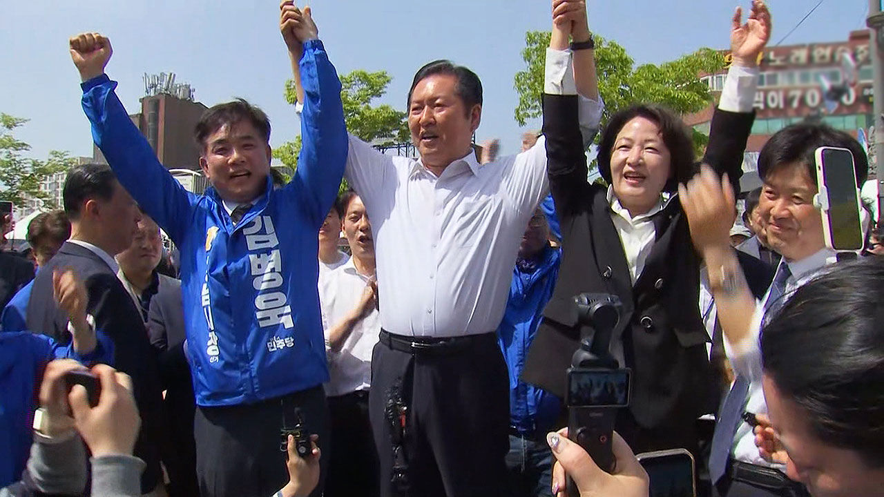 민주당 정청래 대표가 추미애 경기지사 후보, 김병욱 성남시장 후보와 함께 경기도 성남시에 있는 모란시장을 찾았습니다.