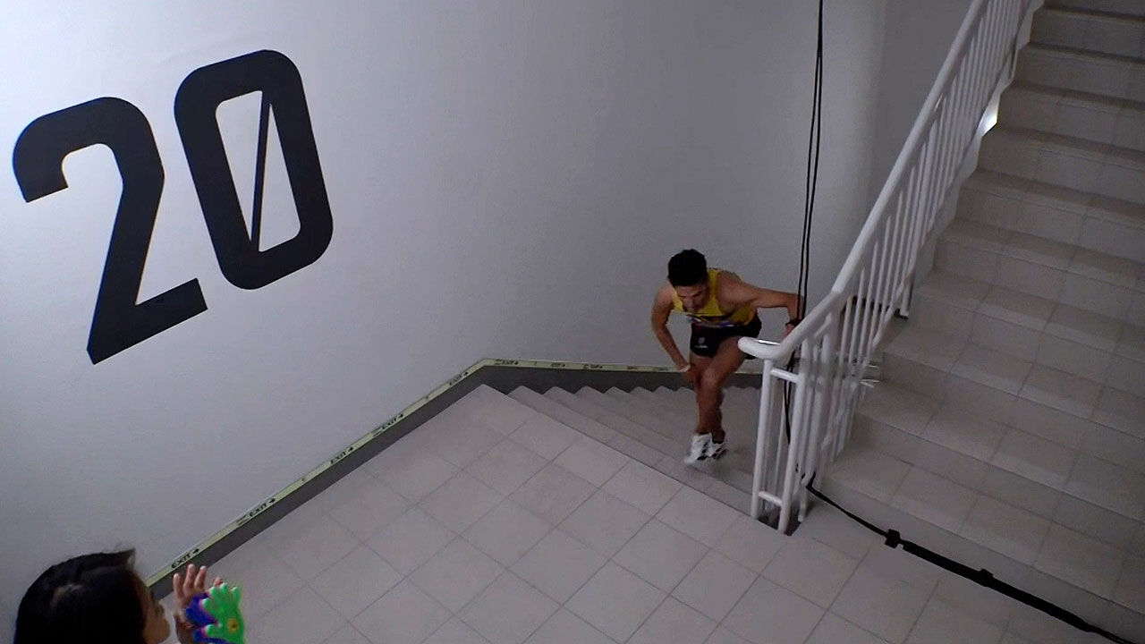 1층부터 123층까지 높이 555미터, 총 2천917개 계단을 오르는 대회입니다.