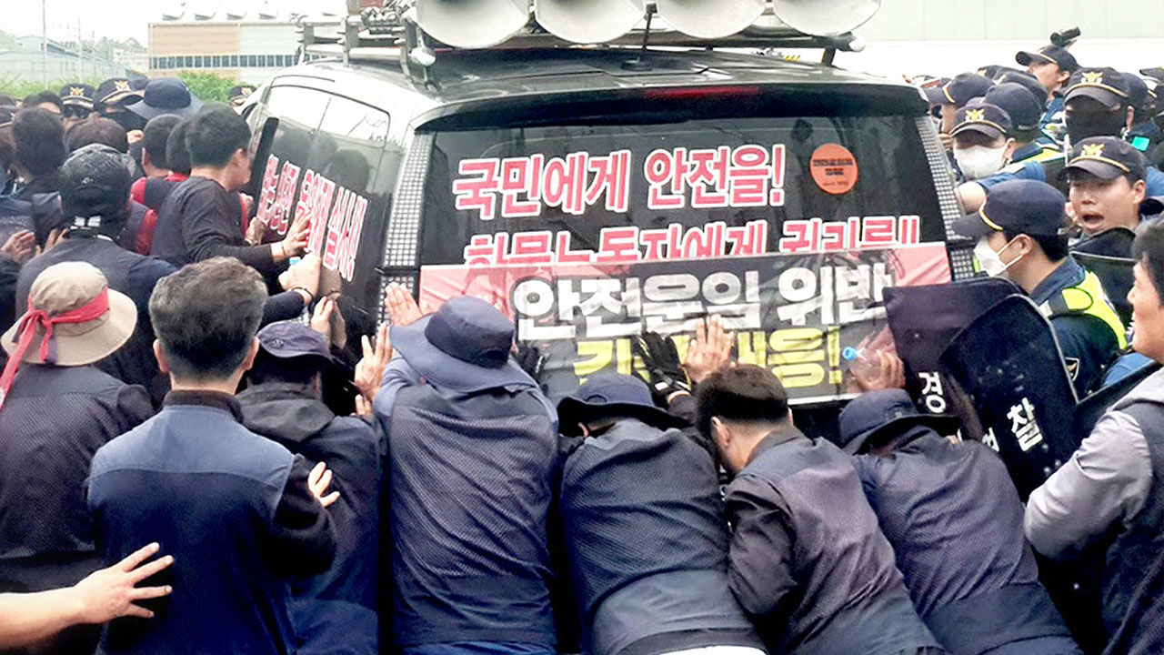 [유병훈/민주노총 화물연대 경남본부 조직국장 : 차량 기사는 사람이 2명 있었지만, 그냥 치고 달아났습니다. 내리지도 않고, 모르는 척 고개만 숙이고 있었습니다.]