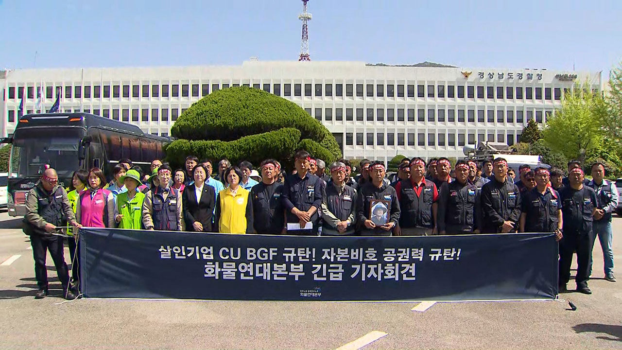 화물연대는 오늘 오전 경남경찰청 앞에서 긴급 기자회견을 열고, 회사 측과 경찰을 규탄하며 책임자 처벌과 재발 방지 대책 마련을 촉구했습니다.