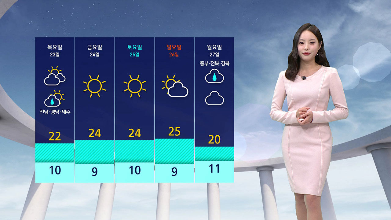 오늘 낮 기온 서울 19도로 어제와 비슷하겠고 남부는 대구가 17도, 광주 15도에 그치며 다소 쌀쌀하겠습니다.