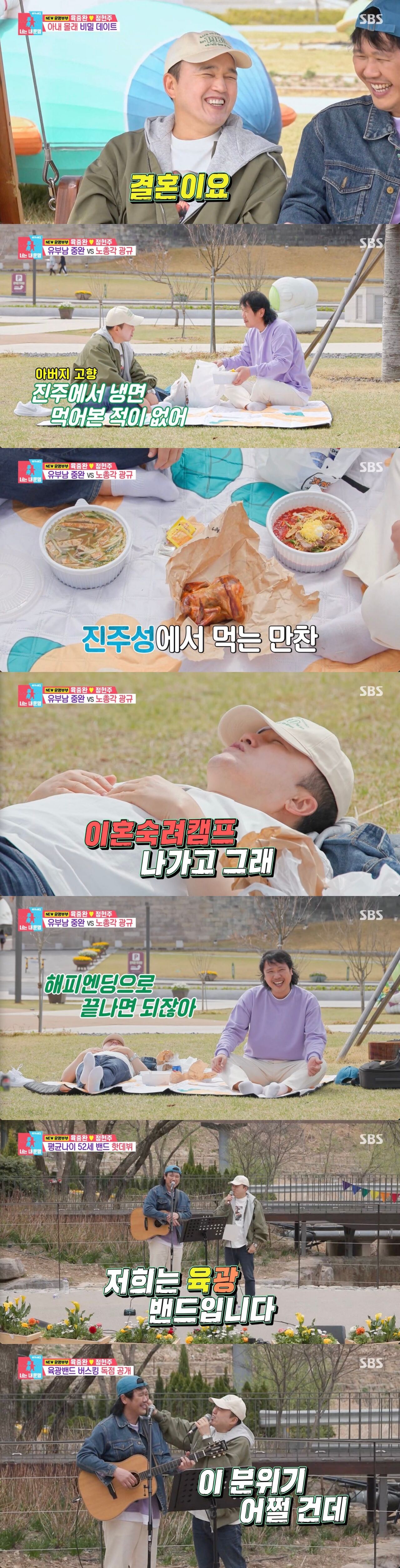 두 사람은 진주 냉면에 닭까지 준비해 진주성에서 만찬을 즐겼다. 그리고 육중완은 칠칠맞은 김광규를 보며 "누가 옆에 있어야겠네"라며 안타까워했다.