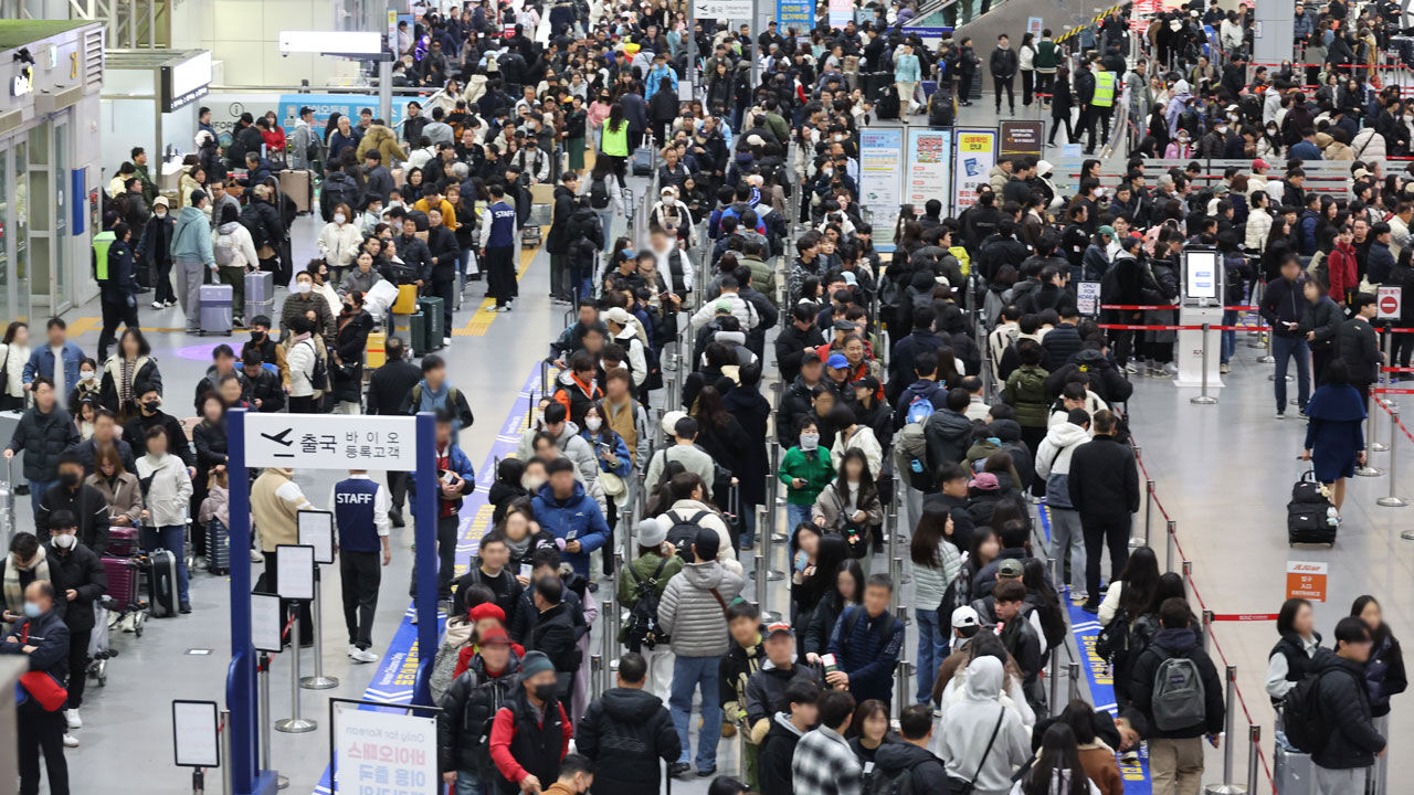 ▲ 여행객으로 붐비는 김해국제공항