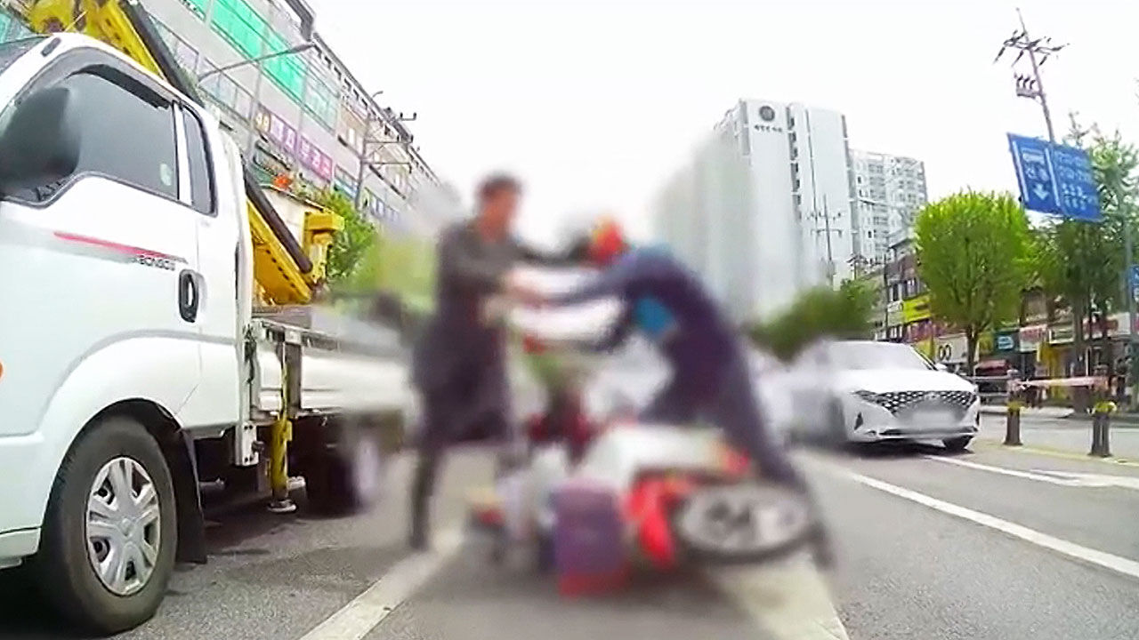 그제(21일) 오후 서울 강서구 우장산역 사거리에서 40대 남성 A 씨가 신호 대기 중이던 우체국 집배원 B 씨에게 다가가 오토바이에서 강제로 끌어내렸습니다.