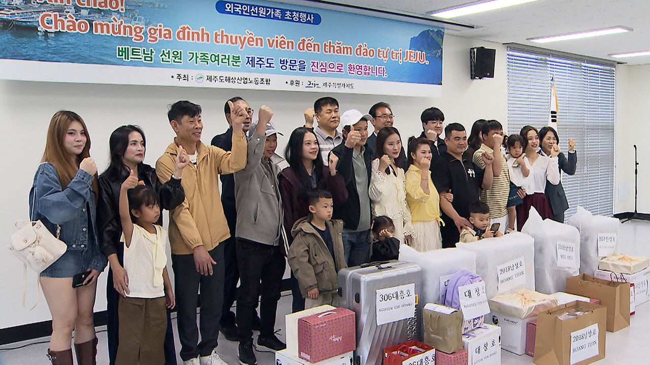 고향을 떠나 제주에서 일하는 베트남 선원들을 위해 가족 15명이 제주를 찾았습니다.