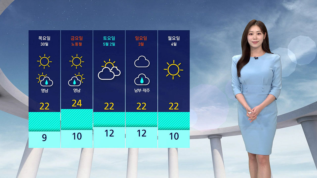 대전의 낮 최고 기온 20도, 울산 19도로 대부분 20도 안팎이 예상됩니다.