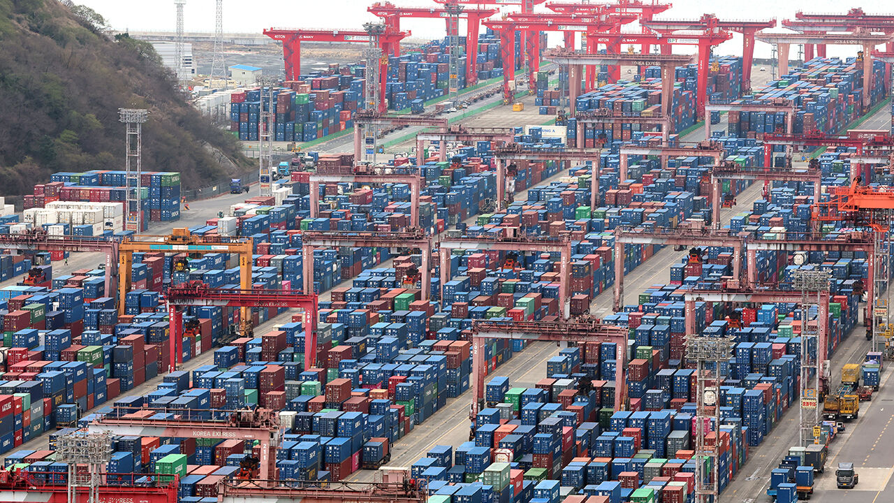 ▲ 컨테이너 쌓여 있는 신선대 부두