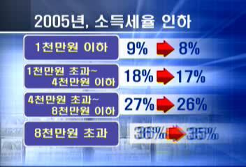 천만원 이하 소득자는 9%에서 8%로 4천만원 이하는 17%로 각각 1%씩 인하됩니다.