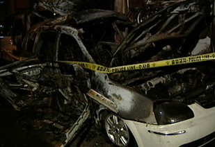 폭발과 함께 승합차는 전소했고 뒤차와 건물까지 불이 옮겨 붙었습니다.