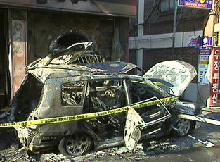 폭발로 차량 파편이 사방으로 튀면서, 주변 건물 유리창 20여 장이 깨졌습니다.