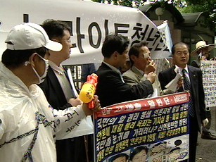 보수 성향 시민단체인 활빈단과 뉴라이트청년연합은 24일 오후 중앙정부청사 앞에서 정부의 기자실 통폐합 방안을 규탄하는 시위를 벌였습니다.
