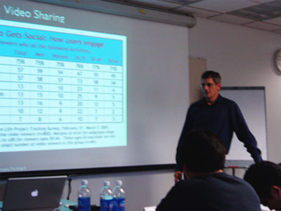 오늘(LA 현지 일자 10.31)은 스튜어트 볼코우(Stuart Volkow, 디지털미디어 컨설턴트)씨가 ‘인터넷 비디오와 유튜브’라는 내용의 강의가 있었다. 볼코우씨는 영화, TV, 인터랙티브 미디어분야에 지난 15년 동안 종사하였고, 현재 UCLA 익스텐션에서 강의를 하고 있다. 볼코우씨는 유튜브(www.youtube.com)에 대한 일반적인 시각과 다르게 거리감을 두면서 유튜브와 뉴미디어에 대한 견해를 피력하고 있다.