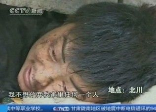 사흘이나 건물더미에 깔려 있던 20대 가장이 고향의 아내에게 남긴 마지막 한마디가 중국에서 TV로 생중계 돼 13억 중국인을 울리고 있습니다.